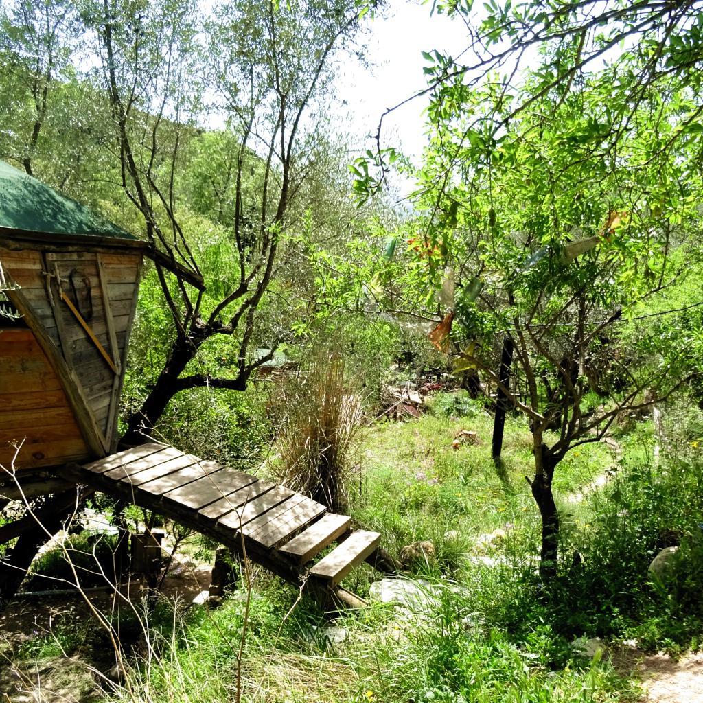 Our Icosaeder is created inside an olive tree right above our pool. All 5 triangular sidewalls can be opened, so it turns into a shady pentagular platform, pervaded by the cool breeze of Sierra Nevada.