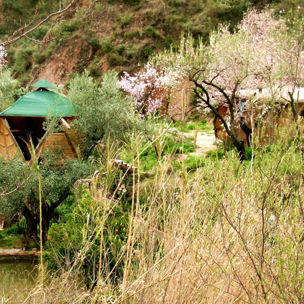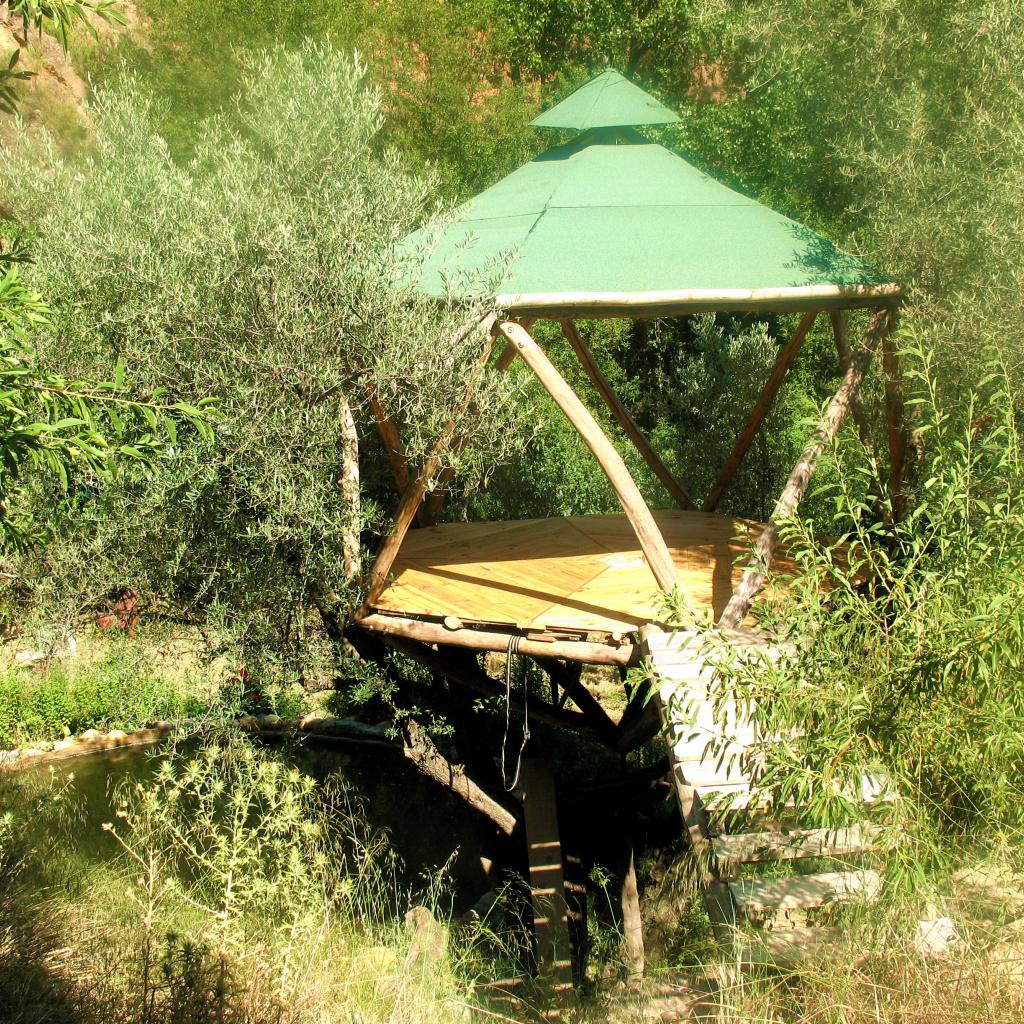 Our Icosaeder is created inside an olive tree right above our pool. All 5 triangular sidewalls can be opened, so it turns into a shady pentagular platform, pervaded by the cool breeze of Sierra Nevada.