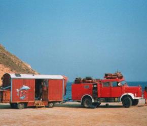 Many former travelling friends of Achim came, partly converted their trucks into workshops, and supported the first phase of the project construction.